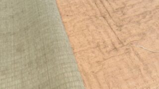 市内にお住いのお客様宅の入れ替え(古い畳を処分し新畳)工事です。下見当初、へり無し半畳市松敷き(琉球畳風市松敷き)に興味をお持ちでしたが、色々提案し、プチモダン乱敷き畳に!カラー畳白茶色と、白茶色と乳白色のオール市松柄の畳表に、白茶色の無地...